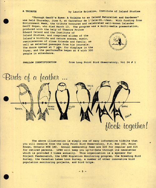 Title Island Naturalist -- 1992-05-01 -- Page 6 Date Issued 1992-05-01 Language English Type Text Genre Page Extent 1 page Rights This material has been made available for research, education, and private use only. Publication, distribution or commercial use of the material requires permission from the copyright holder. Member of Island Naturalist -- 1992-05-01 Digitization Agency Robertson Library, UPEI Reel Number none Reel Sequence Number 1352 Page Number 6 Owning Repository Robertson Library, UPEI