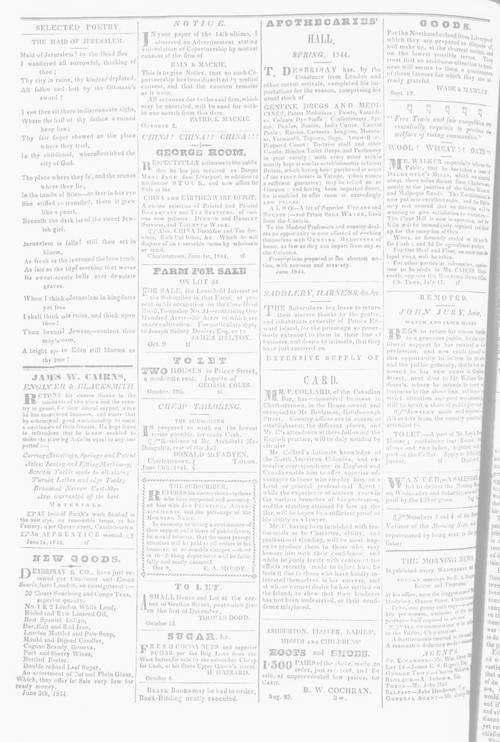 Title Morning News and Sem-Weekly Advertiser -- 1844-11-02 Date Issued 1844-11-02 Language English Type Text Genre Issue Rights This material has been made available for research, education, and private use only. Publication, distribution or commercial use of the material requires permission from the copyright holder. Member of Morning News and Semi-Weekly Advertiser Digitization Agency Robertson Library, UPEI Issue 18 Volume 2