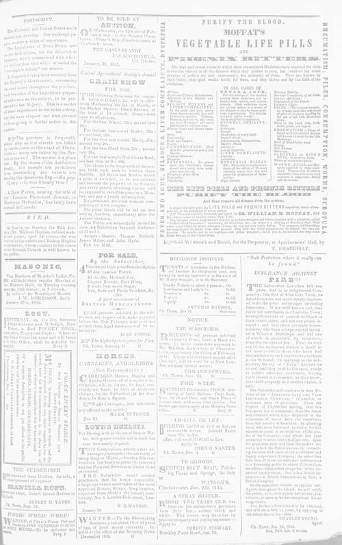 Title Morning News and Sem-Weekly Advertiser -- 1845-02-08 -- Page 3 Date Issued 1845-02-08 Language English Type Text Genre Page Extent 1 page Rights This material has been made available for research, education, and private use only. Publication, distribution or commercial use of the material requires permission from the copyright holder. Member of Morning News and Sem-Weekly Advertiser -- 1845-02-08 Digitization Agency Robertson Library, UPEI Reel Number 1 Reel Sequence Number 0551 Page Number 3 Owning Repository Robertson Library, UPEI