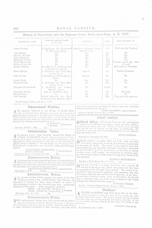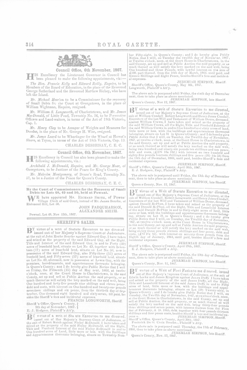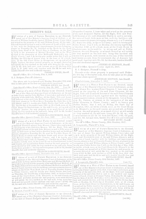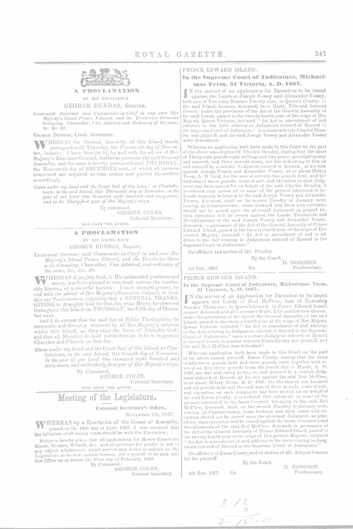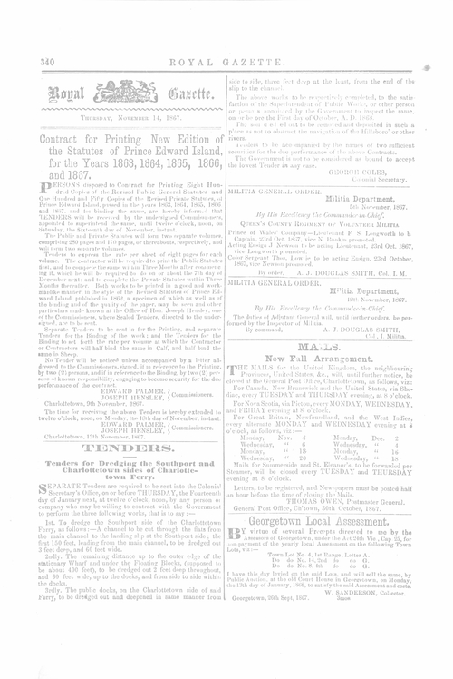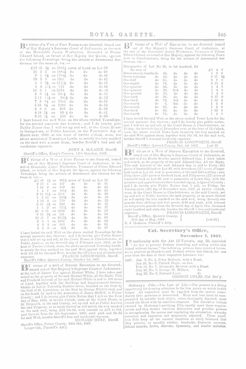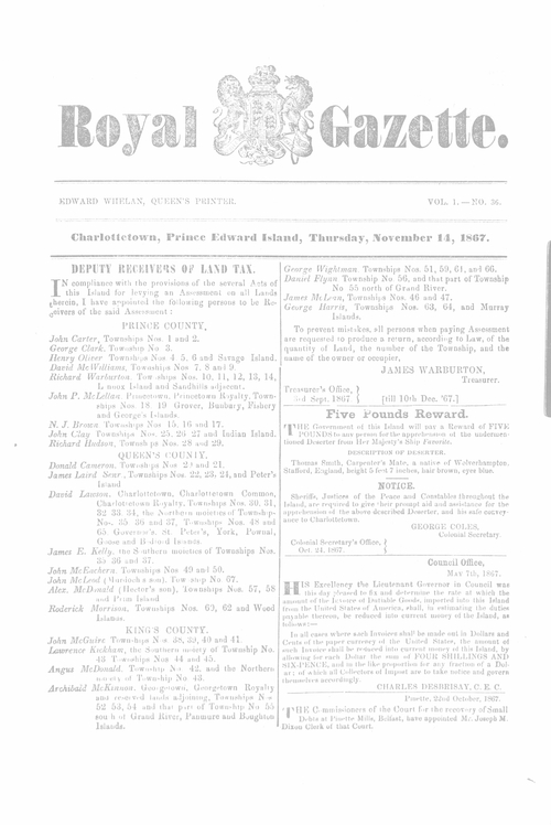 Title Royal Gazette -- 1867-11-14 Date Issued 1867-11-14 Language English Type Text Genre Issue Rights This material has been made available for research, education, and private use only. Publication, distribution or commercial use of the material requires permission from the copyright holder. Member of Royal Gazette Digitization Agency Robertson Library, UPEI Issue 36 Volume 1