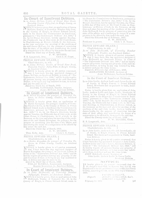 Title Royal Gazette -- 1869-04-09 -- Page 606 Date Issued 1869-04-09 Language English Type Text Genre Page Extent 1 page Rights This material has been made available for research, education, and private use only. Publication, distribution or commercial use of the material requires permission from the copyright holder. Member of Royal Gazette -- 1869-04-09 Digitization Agency Robertson Library, UPEI Reel Number none Reel Sequence Number 0605 Page Number 606 Owning Repository Robertson Library, UPEI