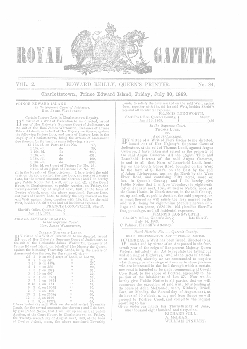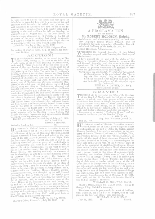 Title Royal Gazette -- 1869-07-30 Date Issued 1869-07-30 Language English Type Text Genre Issue Rights This material has been made available for research, education, and private use only. Publication, distribution or commercial use of the material requires permission from the copyright holder. Member of Royal Gazette Digitization Agency Robertson Library, UPEI Issue 84 Volume 2