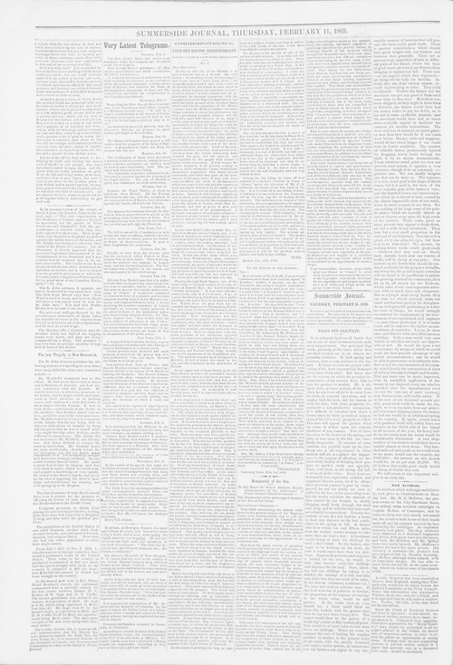 Title Summerside Journal -- 1869-02-11 -- Page 2 Date Issued 1869-02-11 Language English Type Text Genre Page Extent 1 page Rights This material has been made available for research, education, and private use only. Publication, distribution or commercial use of the material requires permission from the copyright holder. Member of Summerside Journal -- 1869-02-11 Digitization Agency Robertson Library, UPEI Reel Number none Reel Sequence Number 0457 Page Number 2 Owning Repository Robertson Library, UPEI