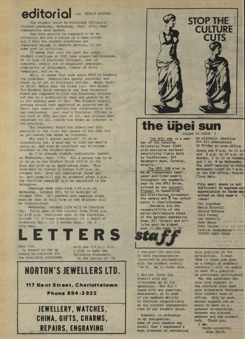 Title The Sun -- 1978-09-28 -- Page 4 Date Issued 1978-09-28 Language English Type Text Genre Page Extent 1 page Rights This material has been made available for research, education, and private use only. Publication, distribution or commercial use of the material requires permission from the copyright holder. Member of The Sun -- 1978-09-28 Digitization Agency Robertson Library, UPEI Reel Sequence Number 0032 Page Number 4 Owning Repository Robertson Library, UPEI