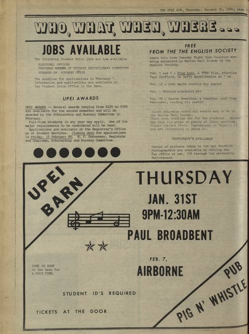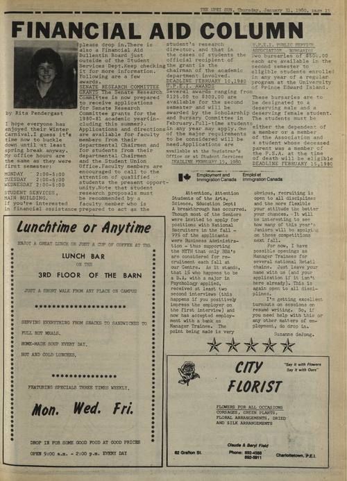 Title The Sun -- 1980-01-31 Date Issued 1980-01-31 Language English Type Text Genre Issue Rights This material has been made available for research, education, and private use only. Publication, distribution or commercial use of the material requires permission from the copyright holder. Member of UPEI Sun Digitization Agency Robertson Library, UPEI Issue 14 Volume 11