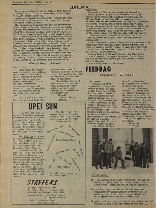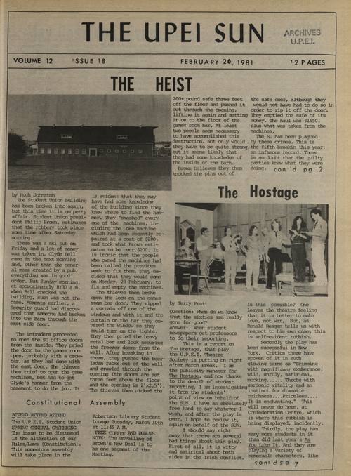 Title The Sun -- 1981-02-26 Date Issued 1981-02-26 Language English Type Text Genre Issue Rights This material has been made available for research, education, and private use only. Publication, distribution or commercial use of the material requires permission from the copyright holder. Member of UPEI Sun Digitization Agency Robertson Library, UPEI Issue 18 Volume 12