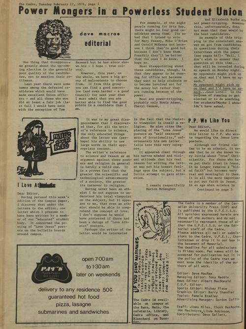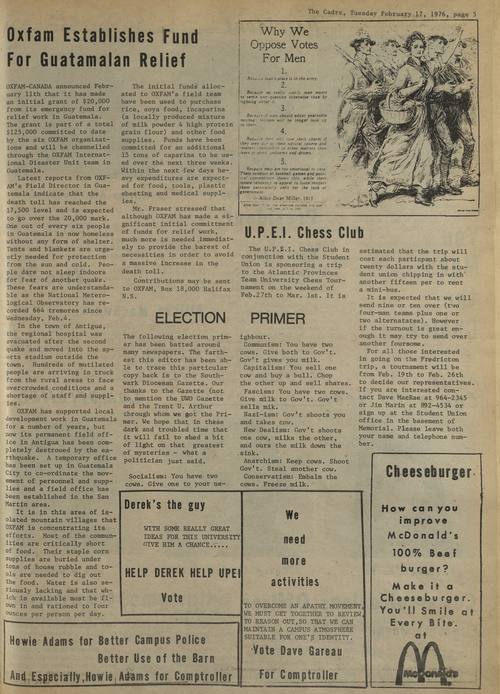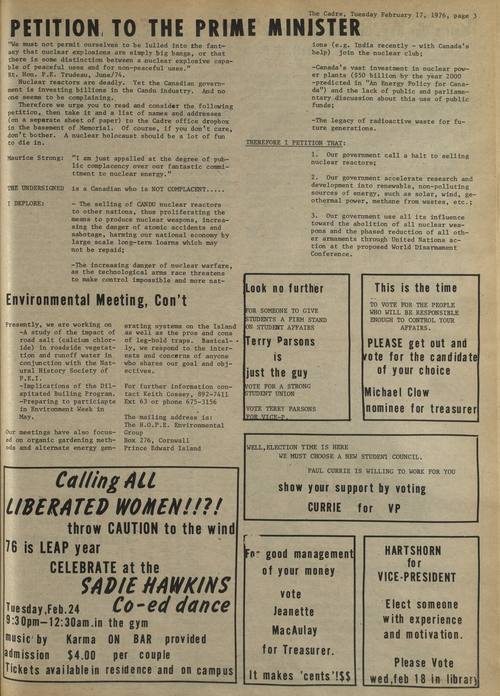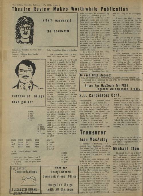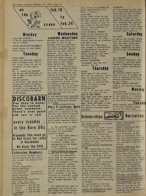 Title The Cadre -- 1976-02-16 Date Issued 1976-02-16 Language English Type Text Genre Issue Rights This material has been made available for research, education, and private use only. Publication, distribution or commercial use of the material requires permission from the copyright holder. Member of Cadre Digitization Agency Robertson Library, UPEI Issue 18 Volume 7