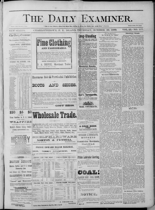 Title Examiner -- 1889-10-10 Date Issued 1889-10-10 Language English Type Text Genre Issue Rights Digitized with permission. For educational, research and study purposes. Member of Examiner Digitization Agency West Canadian Digital Imaging Inc. Issue 117 Volume 25
