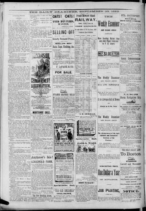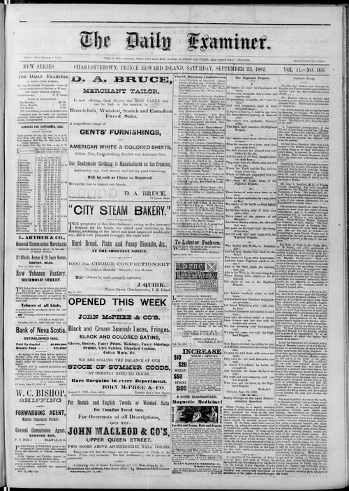 Title Examiner -- 1882-09-23 Date Issued 1882-09-23 Language English Type Text Genre Issue Rights Digitized with permission. For educational, research and study purposes. Member of Examiner Digitization Agency West Canadian Digital Imaging Inc. Issue 106 Volume 11