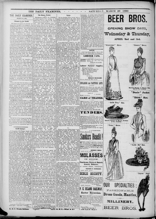 Title Examiner -- 1890-03-29 Date Issued 1890-03-29 Language English Type Text Genre Issue Rights Digitized with permission. For educational, research and study purposes. Member of Examiner Digitization Agency West Canadian Digital Imaging Inc. Issue 102 Volume 25
