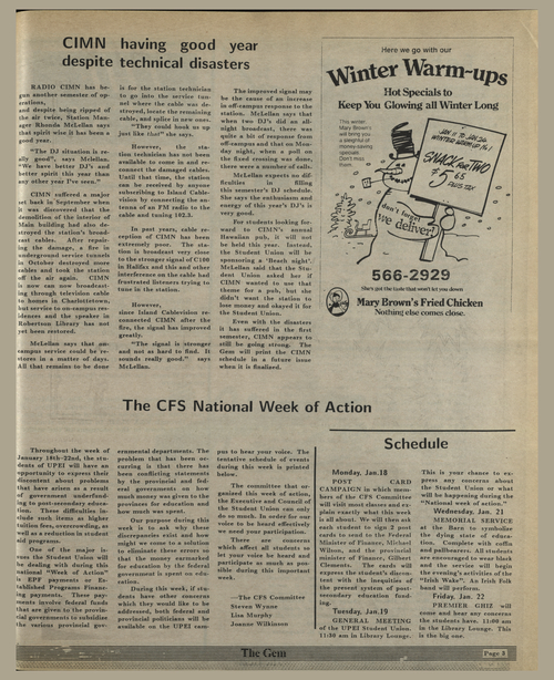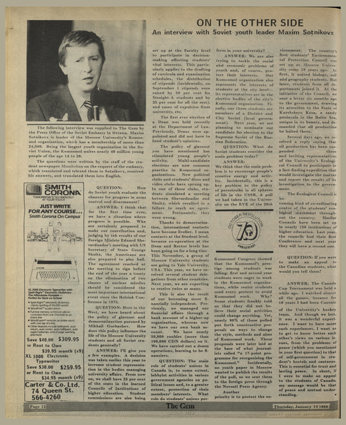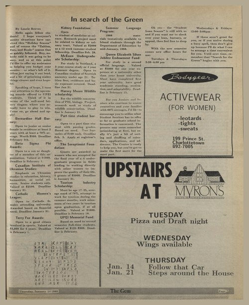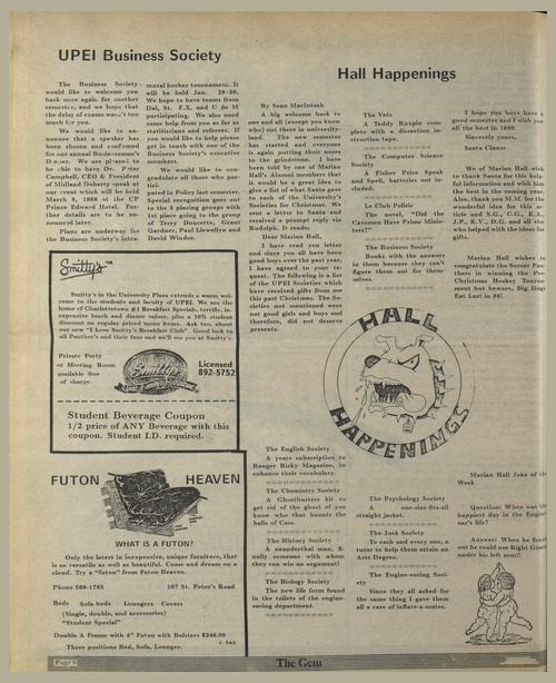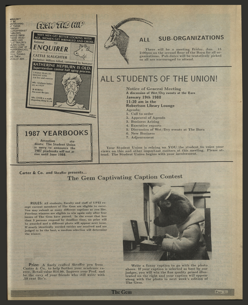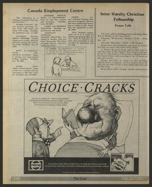 Title The Gem -- 1988-01-14 Date Issued 1988-01-14 Language English Type Text Genre Issue Rights This material has been made available for research, education, and private use only. Publication, distribution or commercial use of the material requires permission from the copyright holder. Member of The Gem Digitization Agency Robertson Library, UPEI
