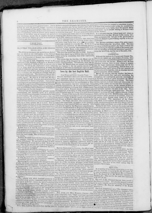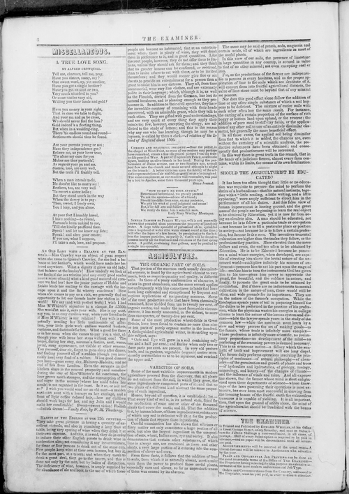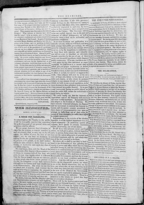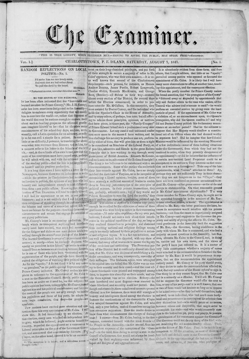 Title Examiner -- 1847-08-07 Date Issued 1847-08-07 Language English Type Text Genre Issue Rights Digitized with permission. For educational, research and study purposes. Member of Examiner Digitization Agency West Canadian Digital Imaging Inc. Issue 1 Volume 1