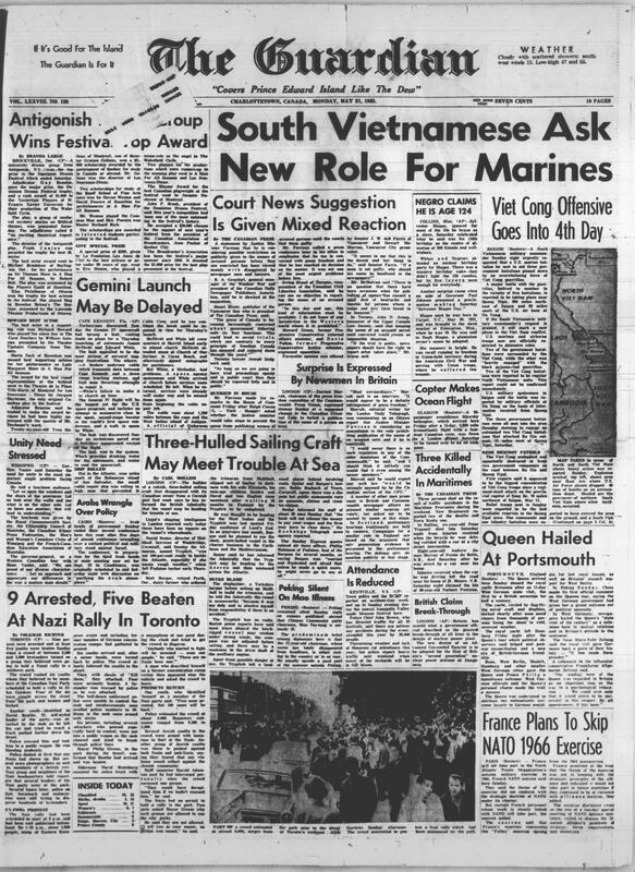Title The Guardian -- 1965-05-31 Date Issued 1965-05-31 Language English Type Text Genre Issue Rights This material has been made available for research, education, and private use only. Publication, distribution or commercial use of the material requires permission from the copyright holder. Member of The Guardian Digitization Agency Robertson Library, UPEI Issue 126 Volume 78