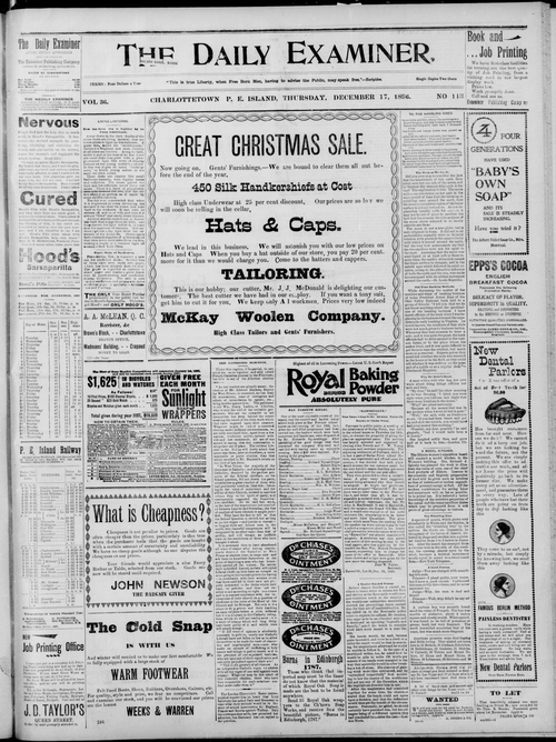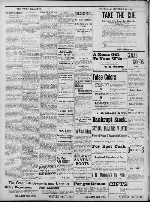 Title Examiner -- 1896-12-17 Date Issued 1896-12-17 Language English Type Text Genre Issue Rights Digitized with permission. For educational, research and study purposes. Member of Examiner Digitization Agency West Canadian Digital Imaging Inc. Issue 143 Volume 36