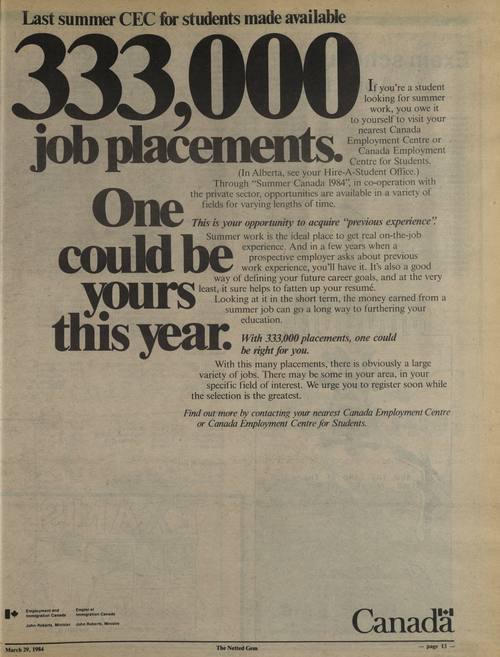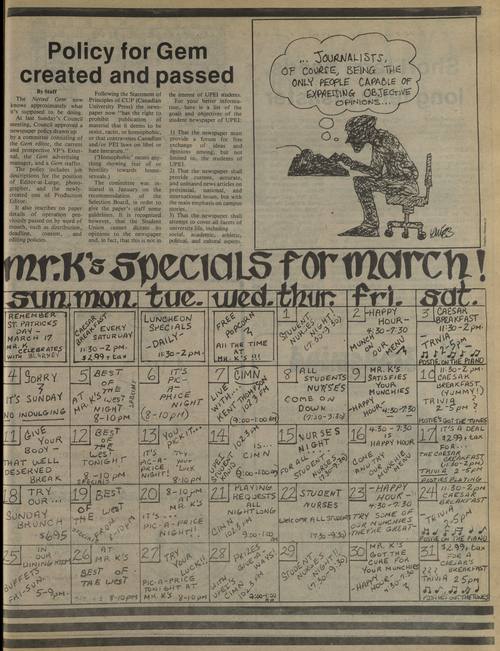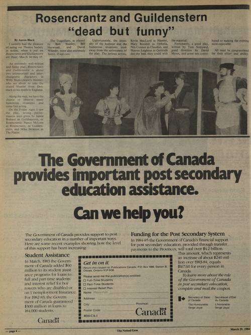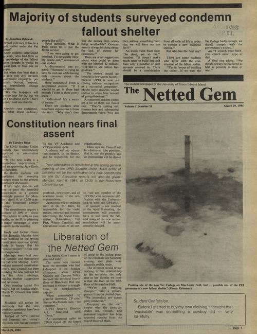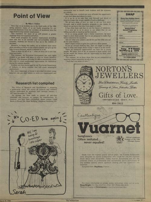 Title The Netted Gem -- 1984-03-29 Date Issued 1984-03-29 Language English Type Text Genre Issue Rights This material has been made available for research, education, and private use only. Publication, distribution or commercial use of the material requires permission from the copyright holder. Member of The Netted Gem Digitization Agency Robertson Library, UPEI Issue 16 Volume 1