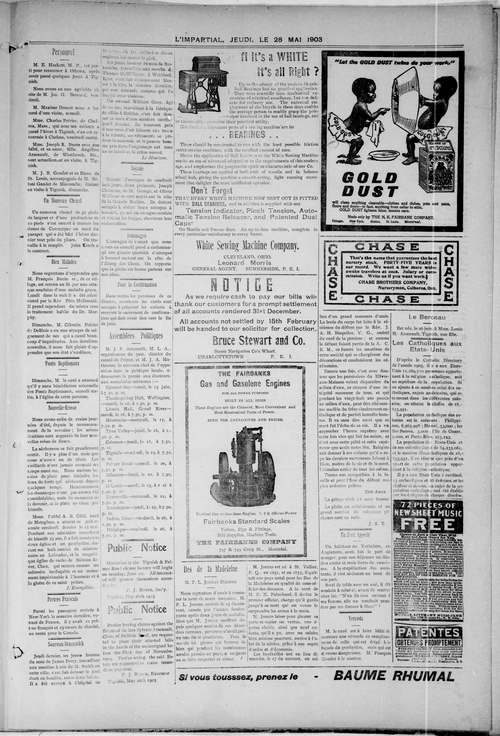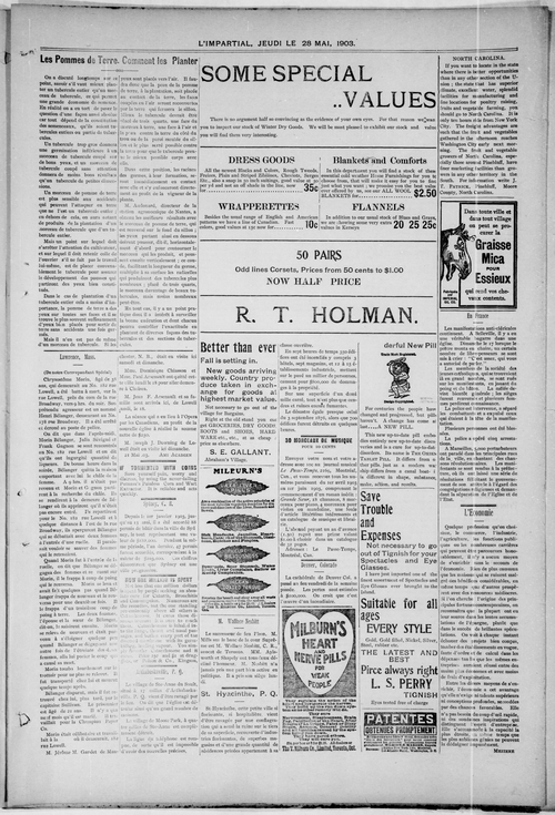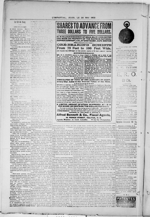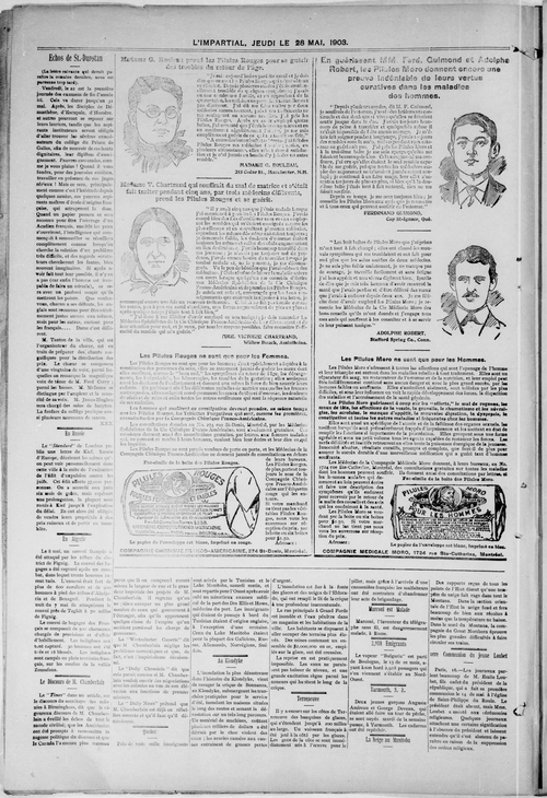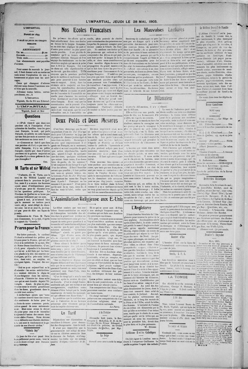 Title Impartial -- 1903-05-28 Date Issued 1903-05-28 Language French Type Text Genre Issue Rights Digitized with permission. For educational, research and study purposes. Member of L'Impartial Digitization Agency West Canadian Digital Imaging Inc. Issue 16 Volume 3
