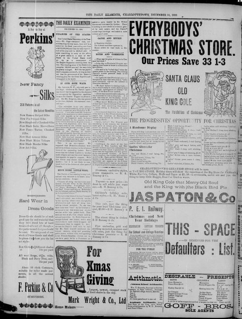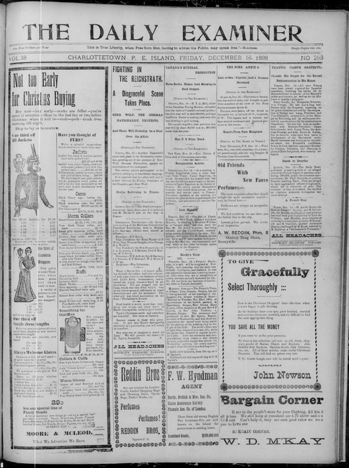 Title Examiner -- 1898-12-16 Date Issued 1898-12-16 Language English Type Text Genre Issue Rights Digitized with permission. For educational, research and study purposes. Member of Examiner Digitization Agency West Canadian Digital Imaging Inc. Issue 293 Volume 38