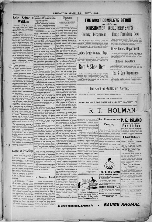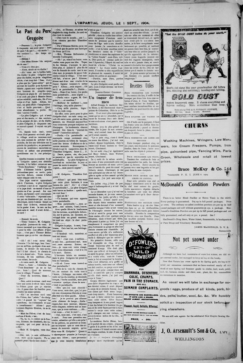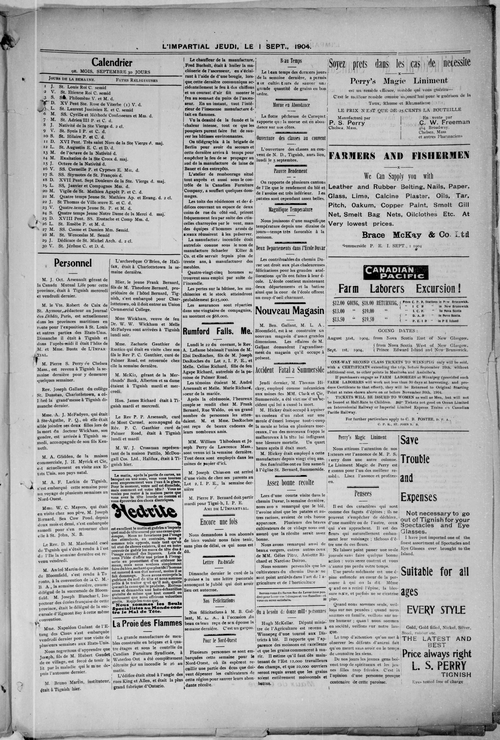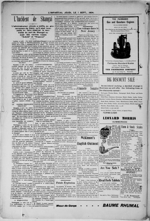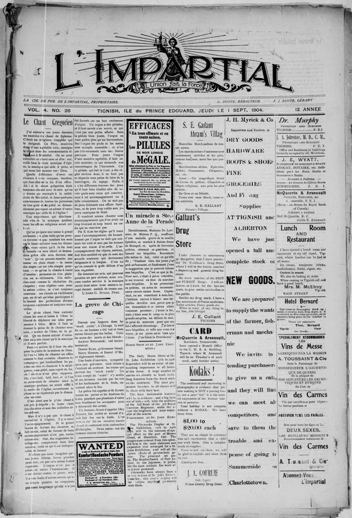 Title Impartial -- 1904-09-01 Date Issued 1904-09-01 Language French Type Text Genre Issue Rights Digitized with permission. For educational, research and study purposes. Member of L'Impartial Digitization Agency West Canadian Digital Imaging Inc. Issue 26 Volume 4