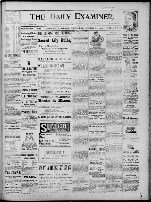 Title Examiner -- 1894-10-31 Date Issued 1894-10-31 Language English Type Text Genre Issue Rights Digitized with permission. For educational, research and study purposes. Member of Examiner Digitization Agency West Canadian Digital Imaging Inc. Issue 103 Volume 34