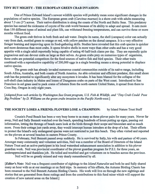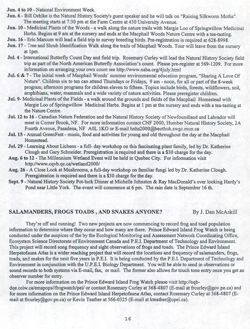 Title Island Naturalist -- 2000-04-01 Date Issued 2000-04-01 Language English Type Text Genre Issue Rights This material has been made available for research, education, and private use only. Publication, distribution or commercial use of the material requires permission from the copyright holder. Member of Island naturalist Digitization Agency Robertson Library, UPEI Issue 156