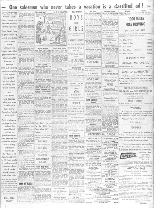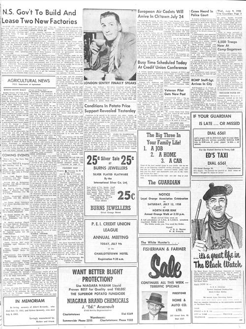 Title Guardian -- 1958-07-09 Date Issued 1958-07-09 Language English Type Text Genre Issue Rights This material has been made available for research, education, and private use only. Publication, distribution or commercial use of the material requires permission from the copyright holder. Member of The Guardian Digitization Agency Robertson Library, UPEI
